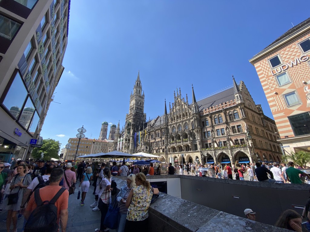 Marienplatz is one of the coolest plazas in Europe that I’ve been to. On one side is the absolutely stunning Rathaus-Glockenspiel, and on the three other sides there are plenty of good spots to eat, grab a drink and enjoy the view.
