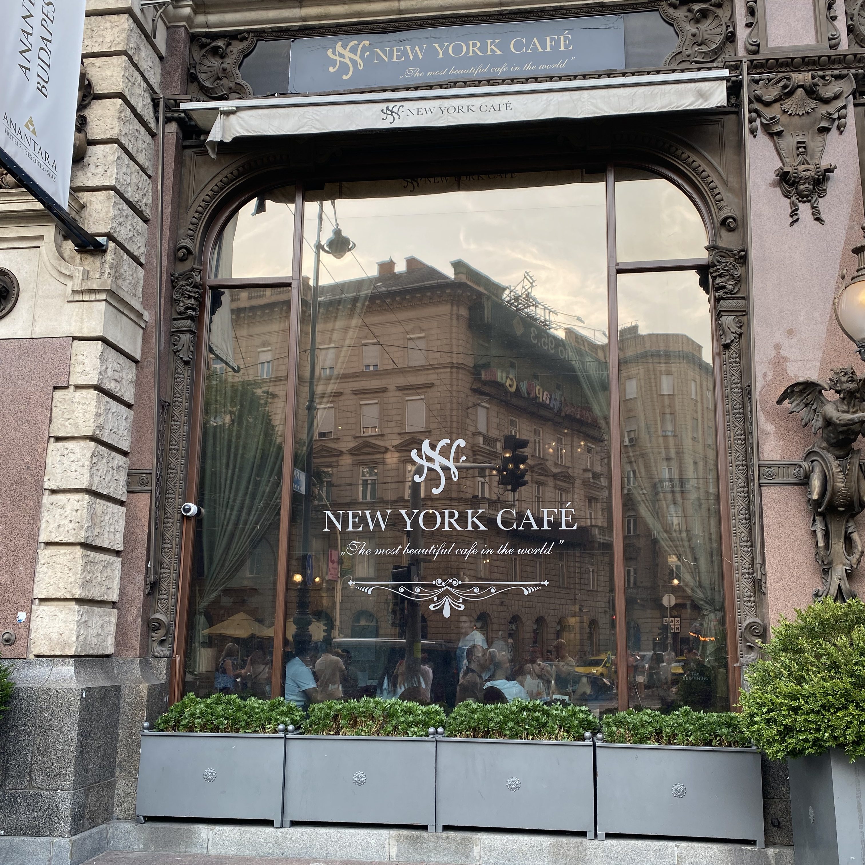 Alas, the (allegedly) world-famous New York Cafe. It’s been named the “World’s most beautiful cafe”, and, while beauty is of course subjective, it is a very pretty cafe. Its interior is incredibly ornate, with murals on the ceiling and Baroque-style (I think that’s what it’s called) walls and decor. They also have a small live orchestra playing and everything seems very high-class.