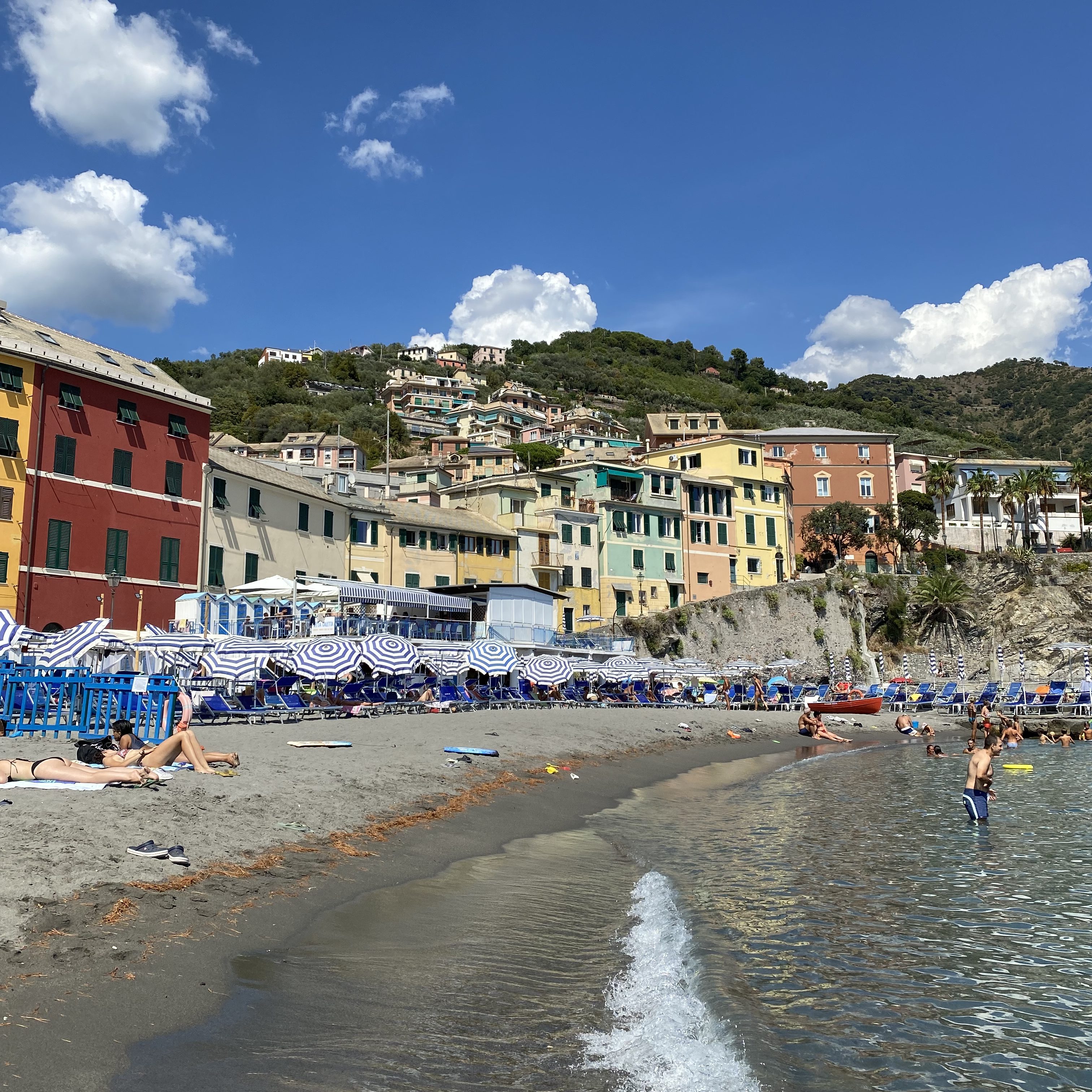 Even though Genova is a coastal city, it was relatively hard to find a nice beach to relax on. Most of the beaches/coves in the city were super rocky and uncomfortable, so we took a short train ride to a few of the nearby towns and found some nice quiet Italian beaches to spend a day on. I highly recommend Bogliasco beach.