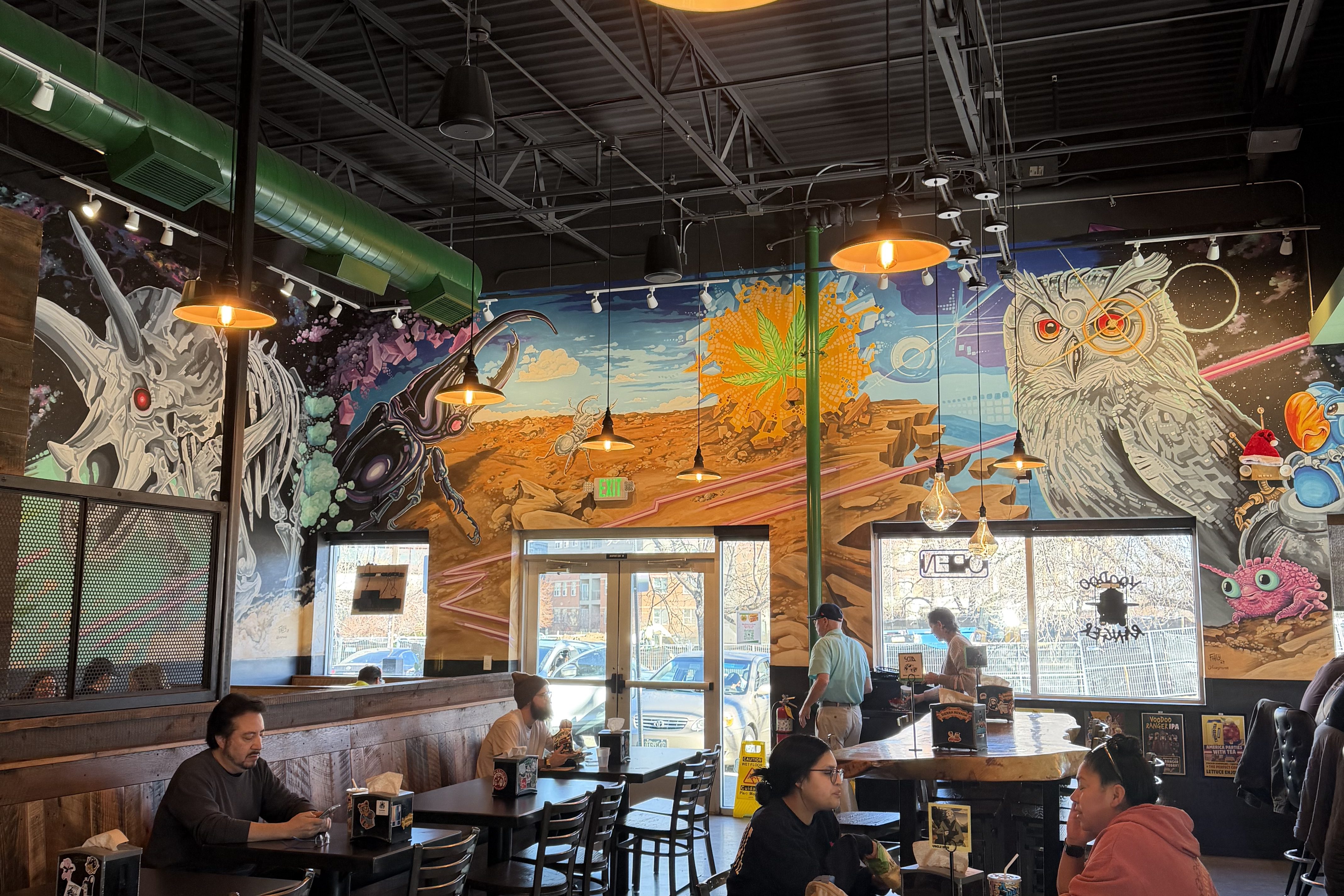 While I’m not the biggest stoner, I do love the atmosphere of the place and the ever-unique murals on the walls that they have at each location. Every restaurant has a slightly different theme (i.e. the one by Sloan’s Lake is movie themed since it’s right next to a movie theater, the one in Centennial has some sort of ‘psychedelic Jurassic Park’ vibe, etc.) but their sandwich options continue to consistently blow my mind in the flavor department.